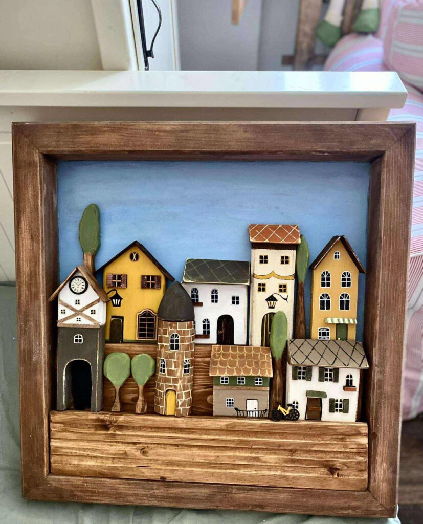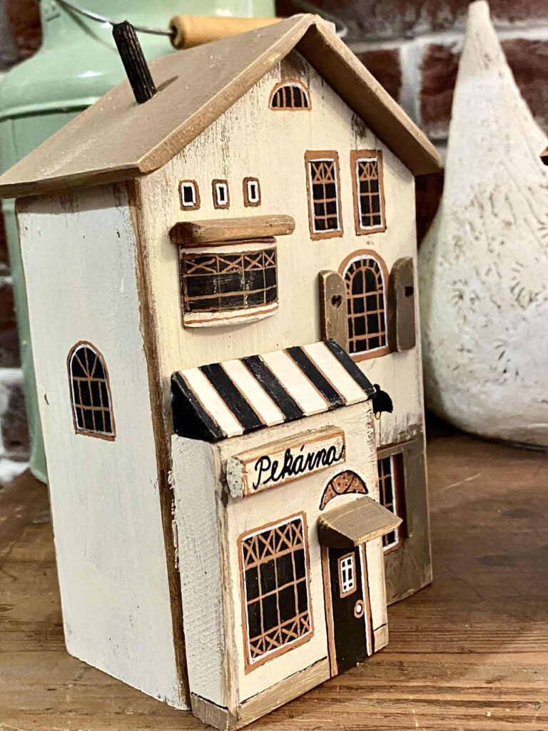 Objevte kouzelný svět dřeva a umění s duší. Každý kousek je originál z ateliéru Marie Patočkové – průkopnice domečkových obrázků a vystavovatelky U Zlatého kohouta v Praze.